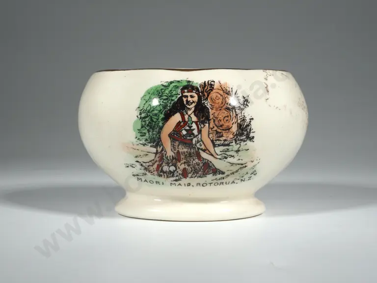Small Sandland Trough Vase With Scene Depicting "Maori Maid, Roturua NZ" Estimate: $50 - $100