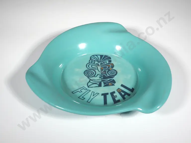 Melamine Ashtray For TEAL Airways. Teal Ground With Tiki Motif & "Fly Teal" Estimate: $30 - $50