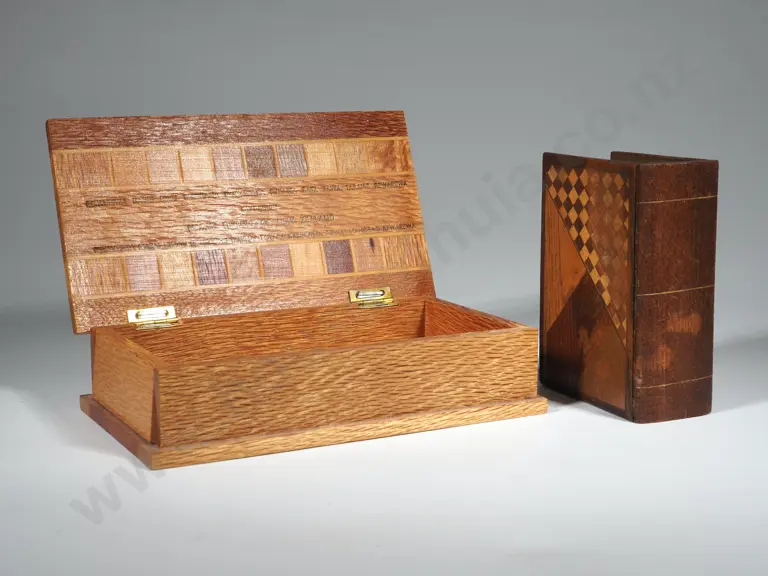 New Zealand Parquetry Inlaid Jewellery Box, A Collection Of NZ Timber. Attributed To W Norrie Estimate: $350 - $550