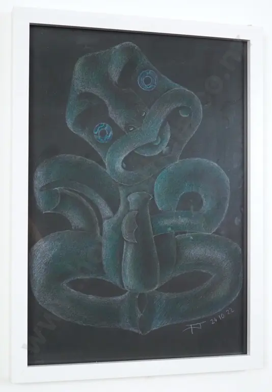 Tahu Jacomb,"Tiki". Pastel On Black Paper. Dated 24.11.22 280 x 200mm Estimate: $300 - $500