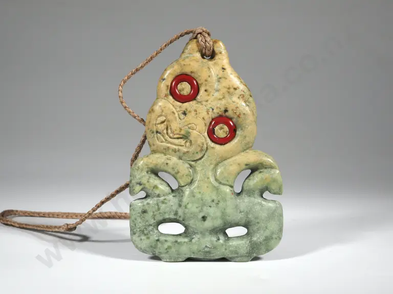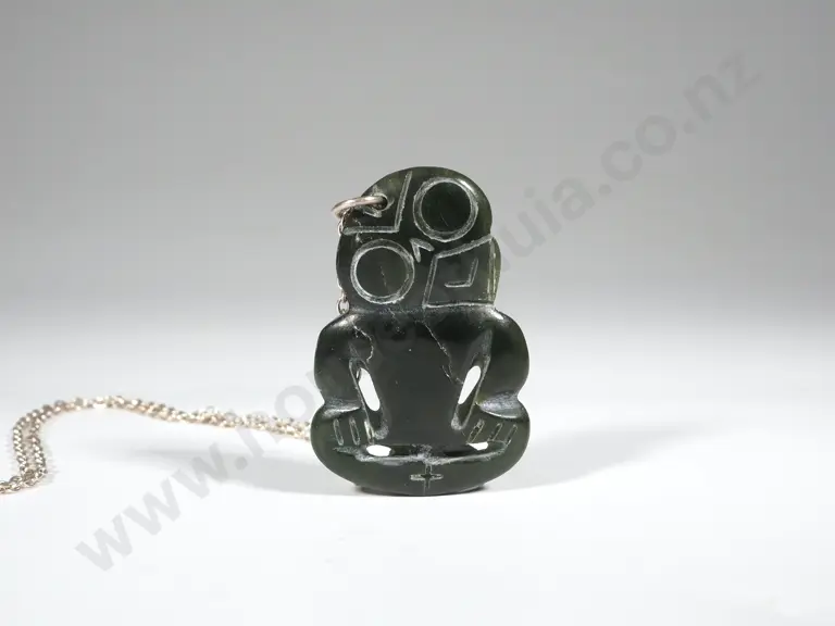 Pounamu Tiki With Plaited Necklace Cord Estimate: $900 - $1,200