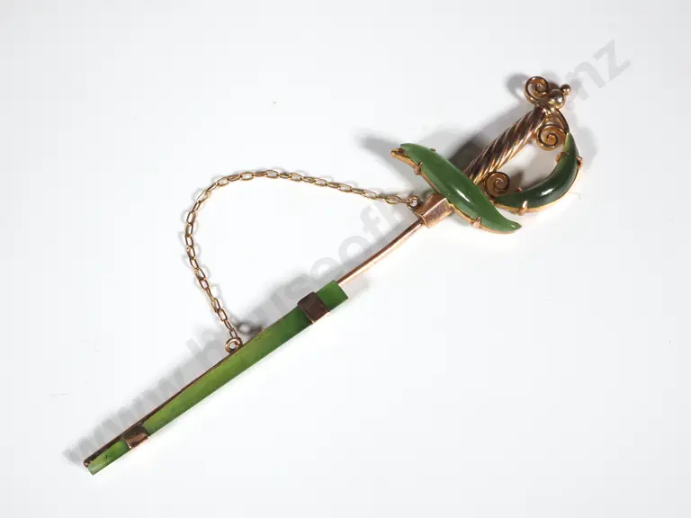 Large Colonial 9ct Gold & Greenstone Sword Brooch Estimate: $200 - $300