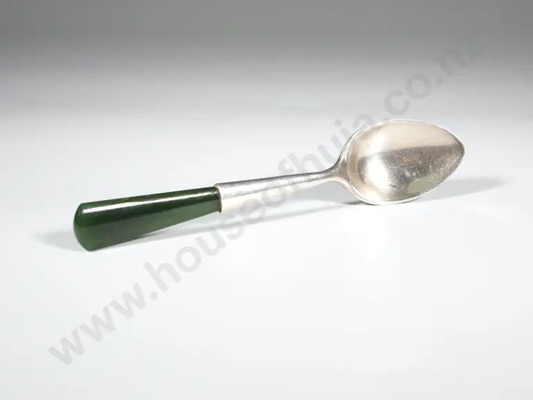 New Zealand Sterling Silver & Greenstone Teaspoon. Joseph Swindle &Son Chch. Estimate: $60 - $100