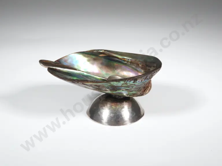 Small Paua Shell Salt With Sterling Silver Base & An Accompanying Silver Salt Spoon with Paua Shell Handle Estimate: $50 - $100