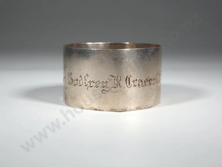 New Zealand Sterling Silver Napkin Ring G Coates & Co. Christchurch. "Godfrey R. Cracroft Wilson From Grandpa. Estimate: $60 - $100