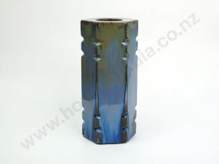 Very Heavy Temuka Pottery Hexagonal Lamp Base w Brown & Blue Glaze (Small Chip on Top) Estimate: $100 - $200