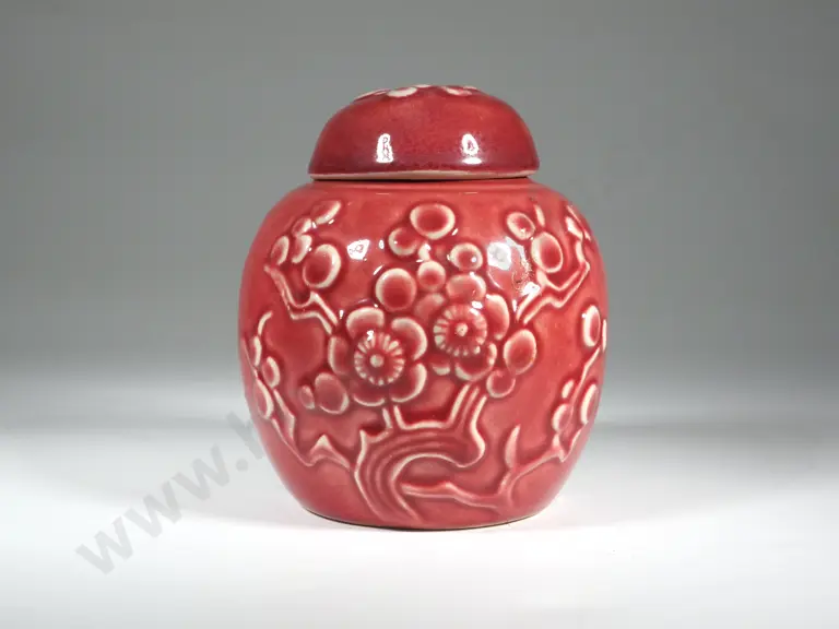 Crown Lynn Crimson Ginger Jar w Moulded Apple Blossom Decoration Estimate: $100 - $200