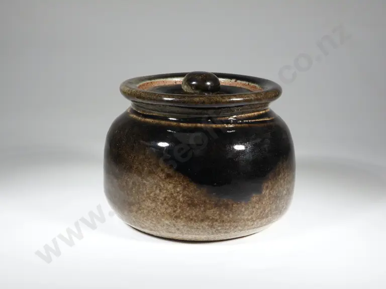 Lidded HIghly Glazed Pot In Greens & Browns Estimate: $20 - $40