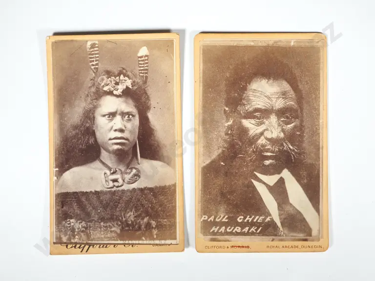 Two Colonial Cabinet Photos; Maori Portraits By Clifford Photographer. Dunedin 1870s Estimate: $40 - $80