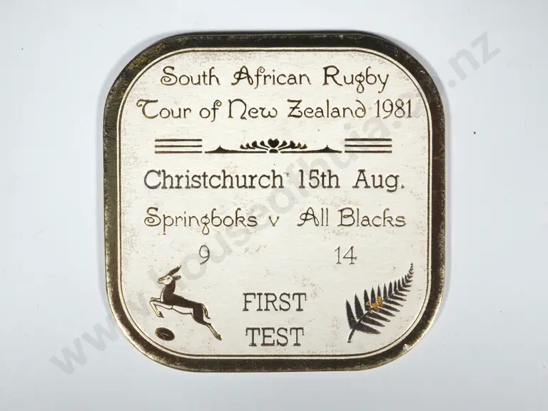 1981 New Zealand South African Rugby Tour First Test Card Coaster Estimate: $40 - $80