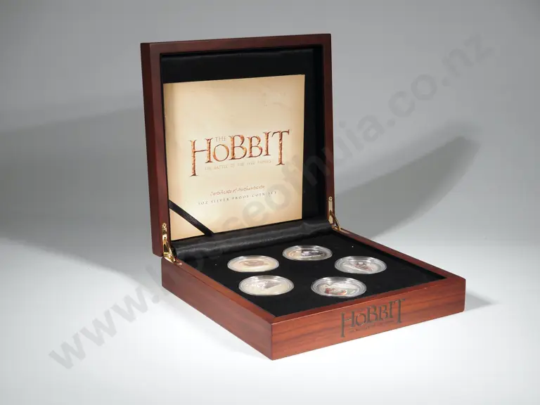 New Zealand Post "The Hobbit" Cased Set Of Five One Oz Silver Coins Estimate: $300 - $500