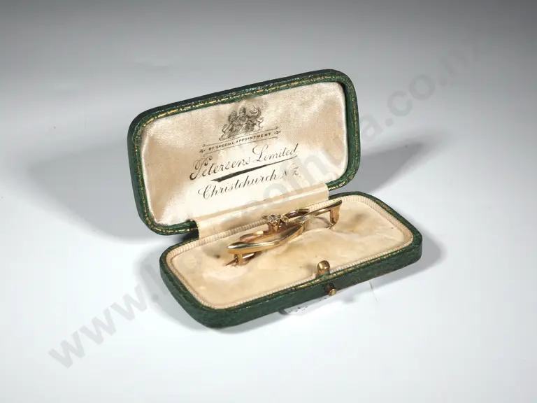 A 15ct Gold & Diamond Brooch By Benjamin Petersen, Christchurch. Marked BP & Co. In Original Box Marked Petersens Ltd Estimate: $1,000 - $1,500