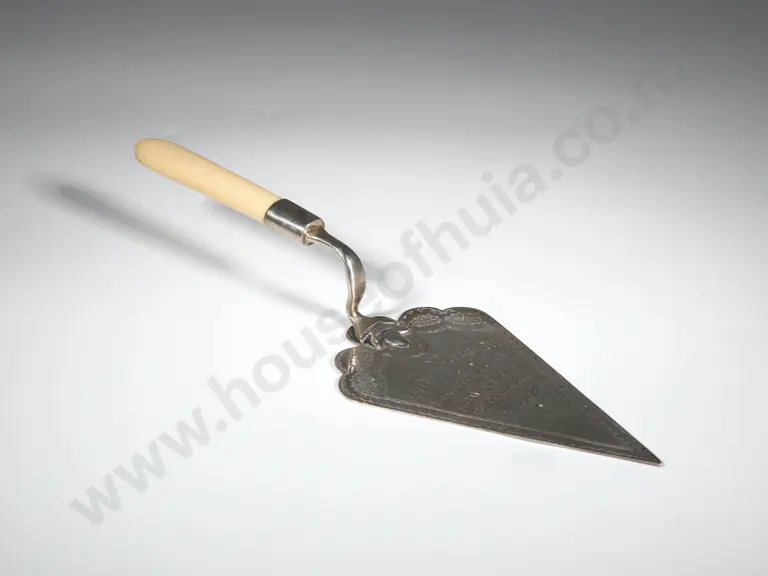 Sterling Silver & Ivory Miniature Trowel.Marked Sterling Silver Gaty Ltd. Presented To TD Burnett Esquire M.P Estimate: $400 - $800