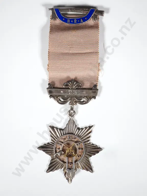 N.R.A. (National Rifle Association), Sterling Silver Medal with Gold Cross Rifles & Enamel Drop.Engraved 1931 Estimate: $200 - $400