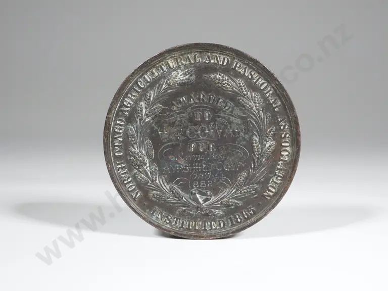 North Otago Pastoral & Agricultural Association Medal 1863, in bronze (51mm), by J.Moore Estimate: $150 - $300