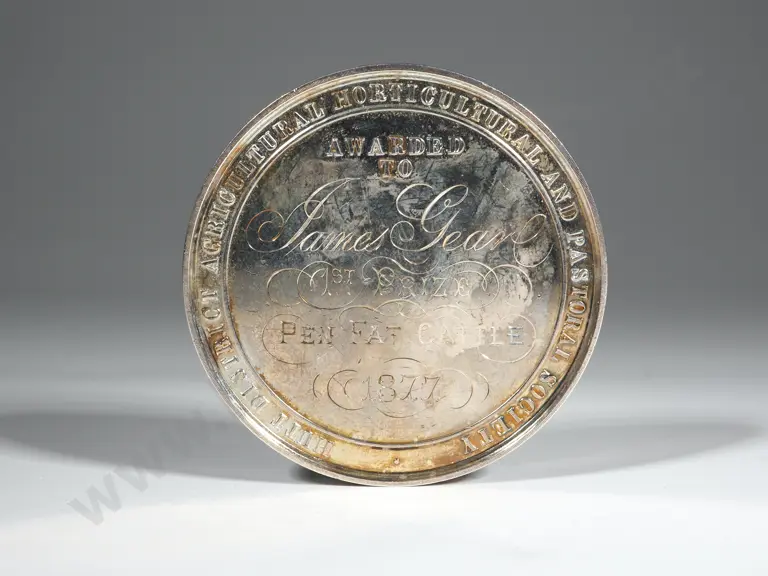 1877 Large Hutt District Sterling Silver Horticultural & Pastoral Society Medal Estimate: $800 - $1,000