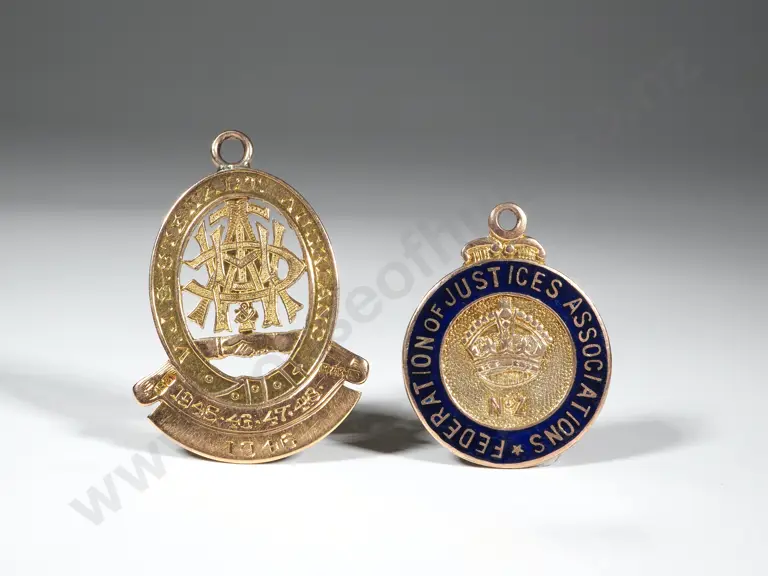 18ct Gold United Commercial Travellers & Warehousemen's Association of New Zealand & 9ct Gold Federation of Justices Fob Estimate: $2,200 - $2,800
