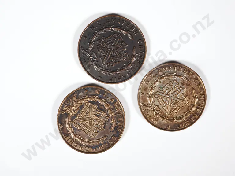 Three New Zealand Amatueru Championship Prize Medals Estimate: $30 - $50