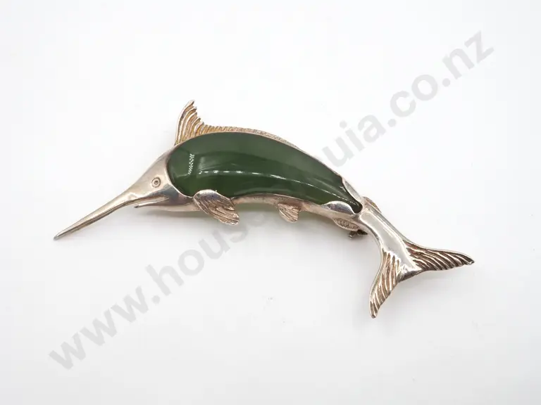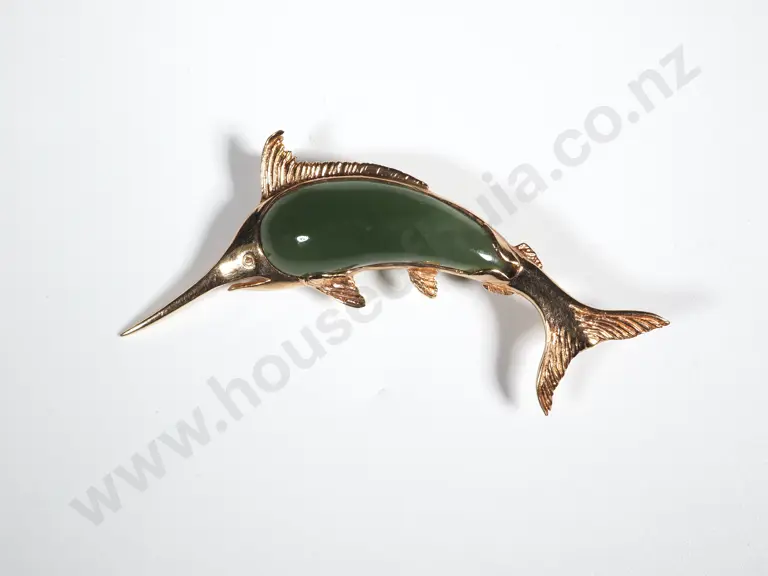 Vintage New Zealand 9ct Gold & Greenstone Marlin Brooch Estimate: $350 - $450