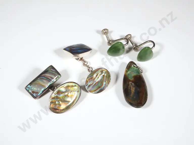Paua Shell Pendant and & Pair of Greenstone Earrings Estimate: $40 - $60
