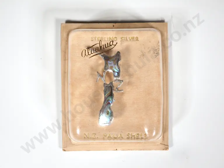 Sterling Silver & Paua Shell Brooch In The Form Of A NZ Map Estimate: $30 - $50