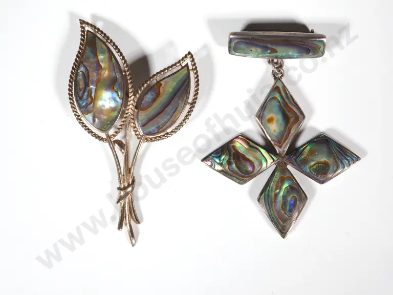 Two Vintage Sterling Silver & Paua Brooches Estimate: $80 - $120
