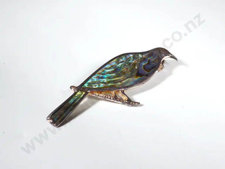 Vintage Sterling Silver & Paua Shell Tui Bird Brooch Estimate: $80 - $120