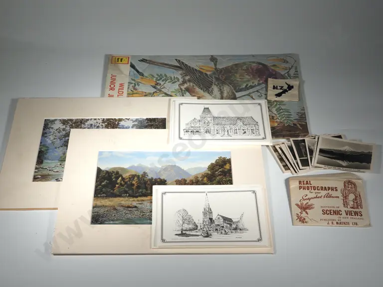 NZ Wildlife Jigsaw "Bellbirds", " Real Photographs For Your Snapshot Album", Christchurch Scene Cards, NZ Tapestry Badge Estimate: $40 - $80