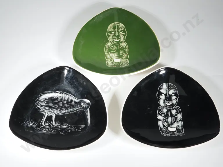 Three Marc Bellaire Hand Painted Plates: One Kiwi & Two Tiki
