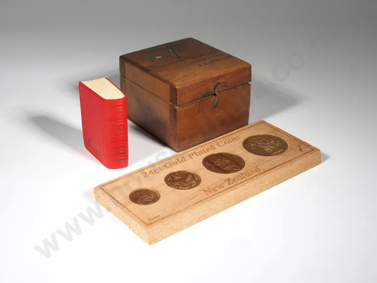 New Zealand Miniature Maori Dictionary / NZ Wooden Box / NZ Coins in Presentation Wooden Display