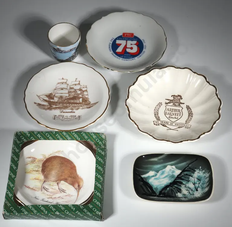 NZ Souvenir China Small Dishes, Queenstown NZ Eggcup, Hand painted "Anna" Studio Small Dish Of Mount Cook Estimate: $40 - $80