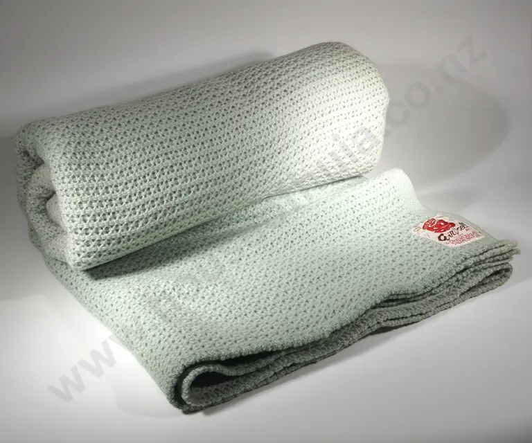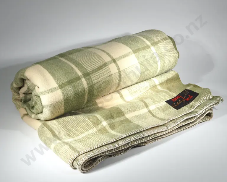 Green & White Double Checked NZ Wool Blanket. Robin Wul Canterbury. Estimate: $80 - $120