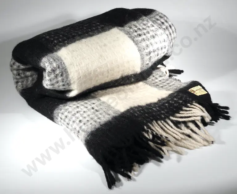 Black & White Check Onehunga Blanket. Made From Pure New Zealand Wool Form The Onehunga Woollen MIlls Auckland