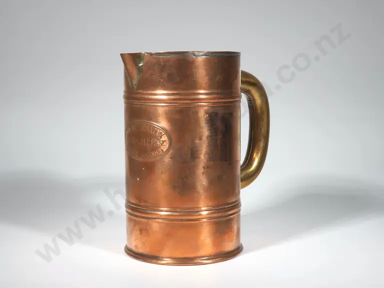 French Copper Jug w Crest & Brass Handle Estimate: $60 - $80
