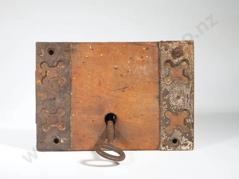 Door Lock Mechanism W Key & Ornate Iron Straps Estimate: $30 - $50