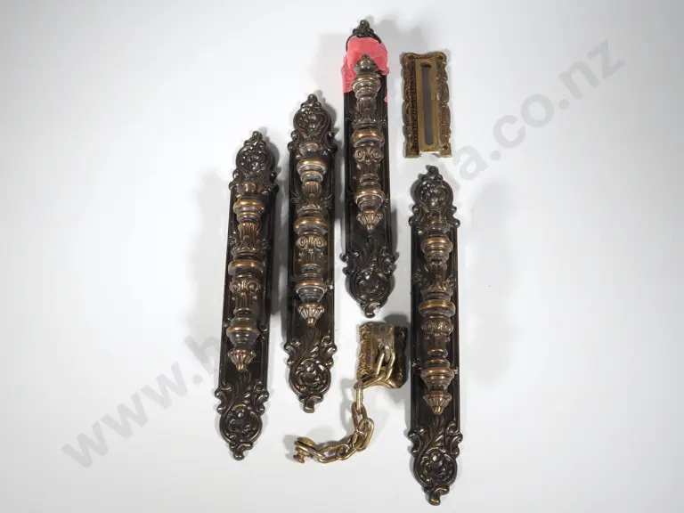 Four Retro Brass Door Handles with Screws Estimate: $40 - $80