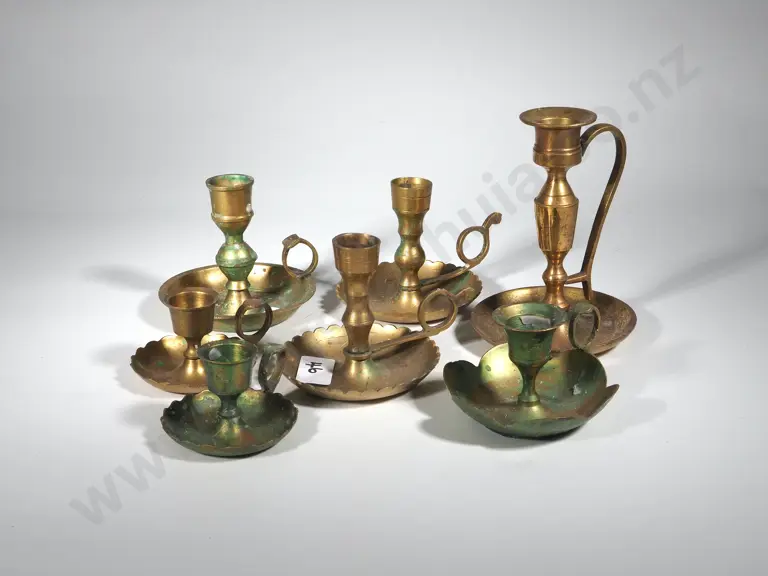 Collection Of Five Brass Chambersticks Estimate: $50 - $100