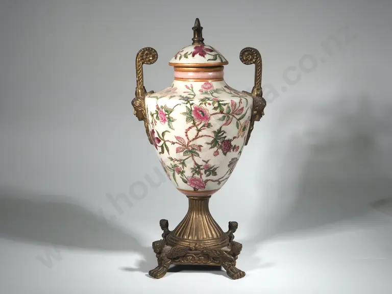 Sevres Style Porcelain & Brass Lidded Urn Estimate: $200 - $300