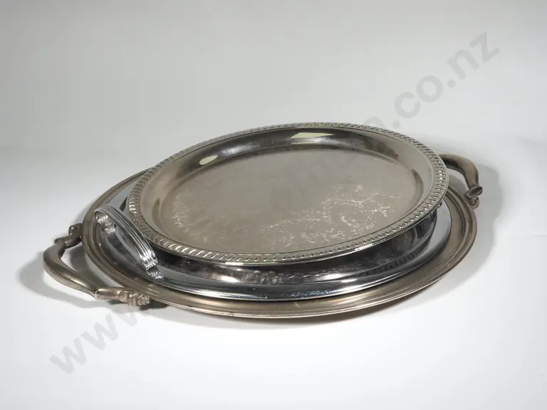 Two Silver Trophy Trays & One Stainless Trophy Tray Estimate: $30 - $50