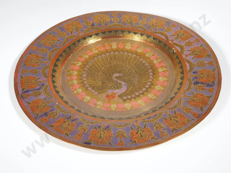 Vintage Circular Brass Tray Peacock Benares Estimate: $40 - $80