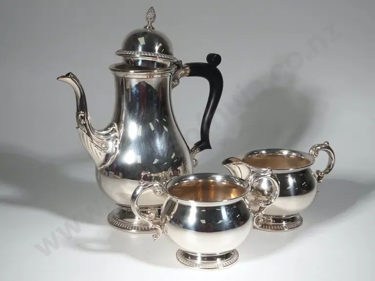 Silver Plate Tea set Comprisig Coffee Pot, Sugar & Creamer Estimate: $30 - $50