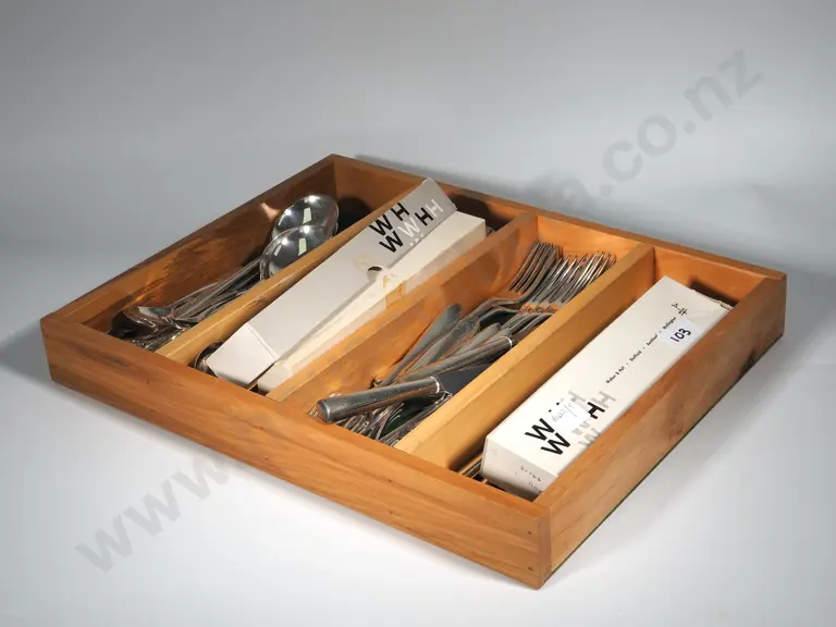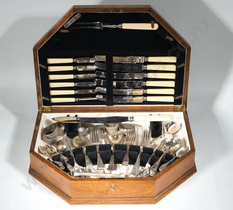 Oak Canteen With Assorted Cutlery & Napkin Rings Estimate: $80 - $120