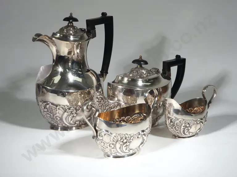 Four Piece Silver Plate Tea Set Comprising Teapot, Water Jug, Creamer & Jug. Maker APW Estimate: $50 - $150