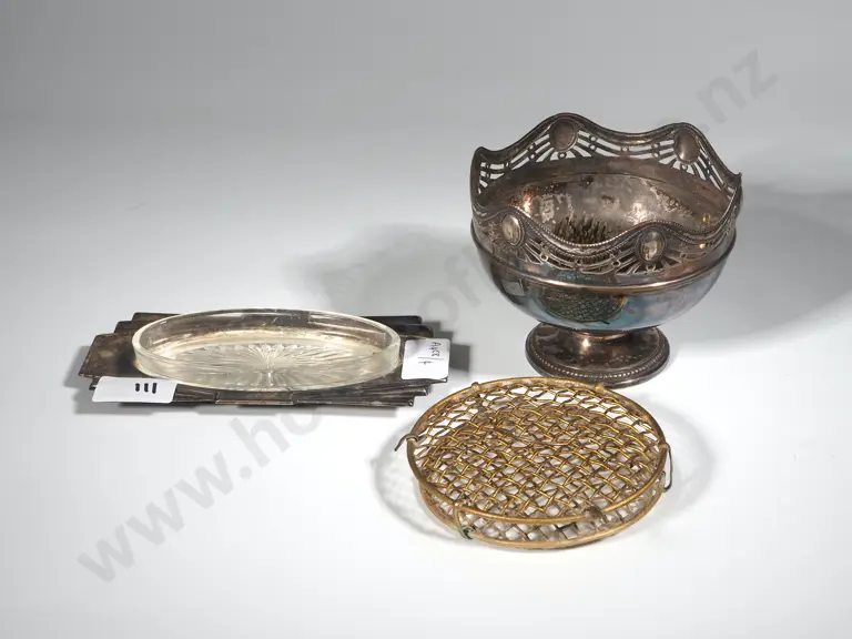 Silver Plate Art Deco Butter Dish & a Small Flower Bowl With Grill Estimate: $20 - $40
