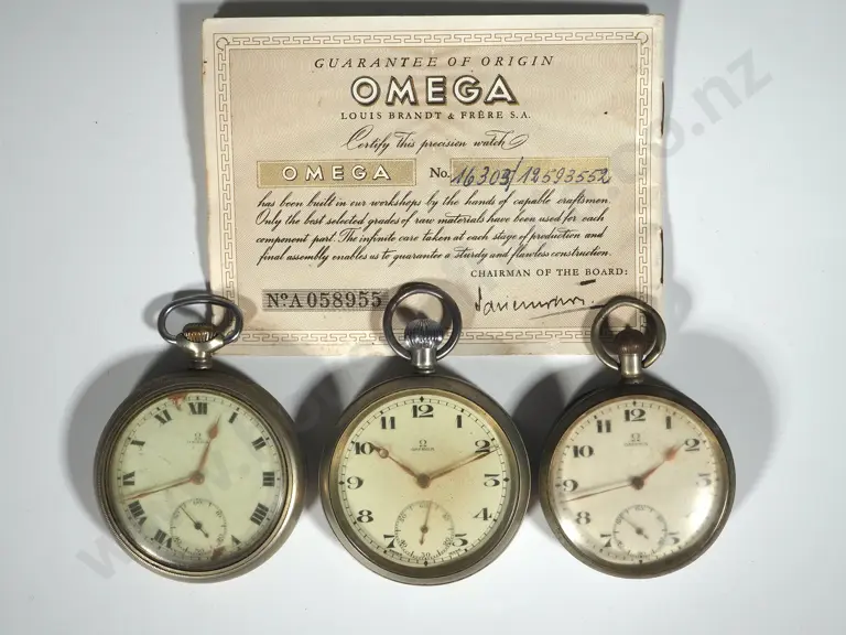 Three Vintage Omega Pocket Watches With Omega Guarantee Of Origin Estimate: $100 - $200