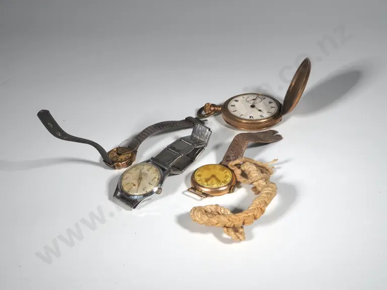 Bag Containing Two Gents Wrist Watches (Unicorn & Alpha), Ladies Wristwatch (Rotary) & a Gold Plated Hunter Estimate: $40 - $80