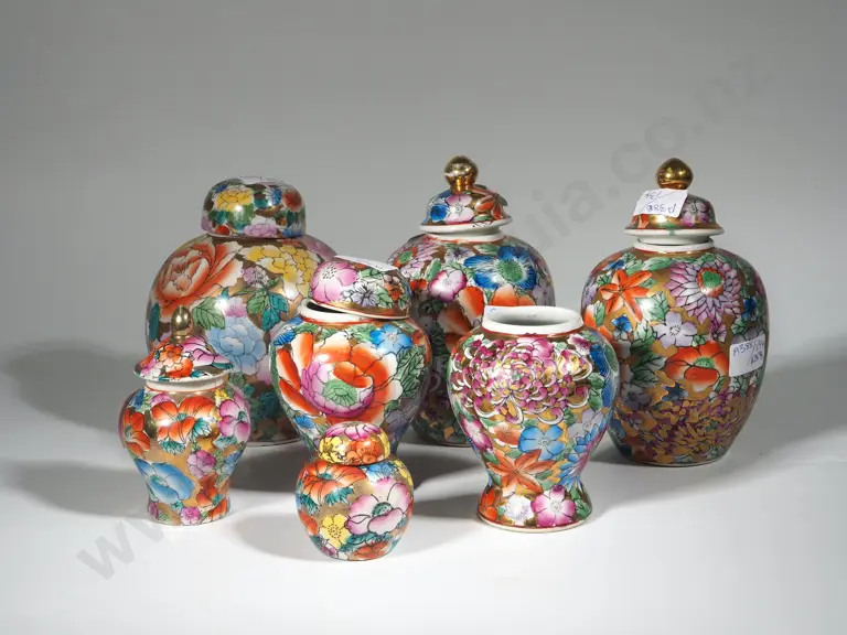 Collection of Three Ginger Jars & Three LIdded Jars with Allover Floral Decoration and Gilt Enhanced Estimate: $80 - $120