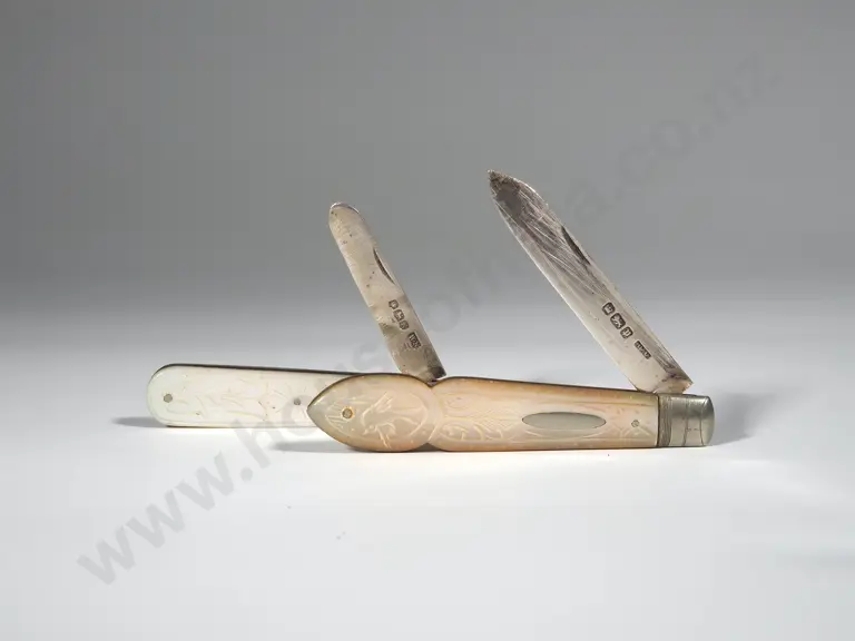Two Sterling Silver & Mother of Pearl Pocket Knives Estimate: $80 - $120