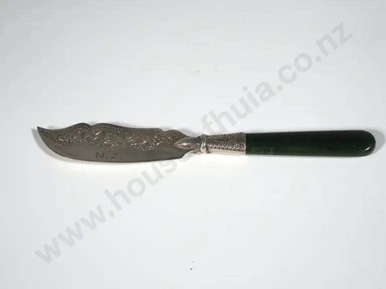 Colonial Greenstone & Sterling Silver Butter Knife Estimate: $80 - $120