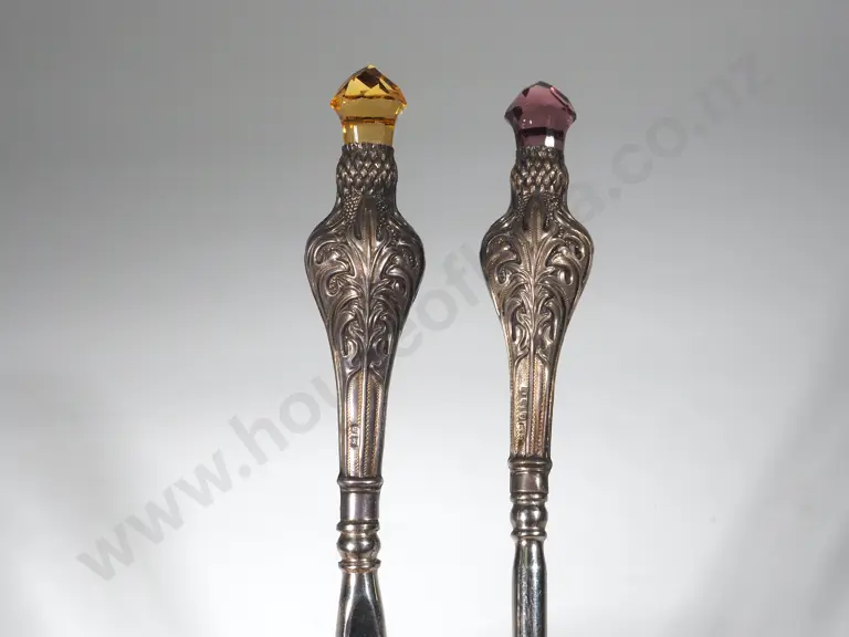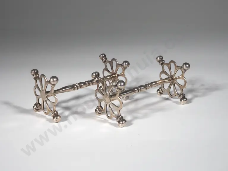 Pair Of Sterling Silver Knife Rests with Pierced Flowerhead Form Ends & Baluster Shafts . London 1827 Estimate: $100 - $200